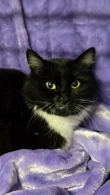 Sash - adoptedFemale4 MonthsSash is an (almost) 4 month old tuxedo. She is spayed and ready for her forever home. Sash enjoys everyone's company and loves to play or snuggle with other kitties.