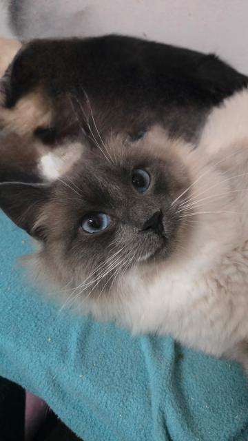 Laddie - AdoptedFemale5 MonthsBeautiful Blue Eyes! Laddie is a 5 month old Rag Doll mix who is spayed, microchipped and vaccinated. She'd be shy at first but after awhile, she'll be rubbing against your legs wanting attention.