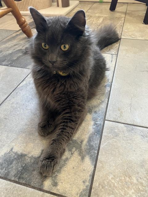 Asher ~ adoptedMale1 YearThe first thing you'll notice about Asher is his silky, grey, soft long fur and extra fluffy tail. He is one and half years old and is extremely friendly.