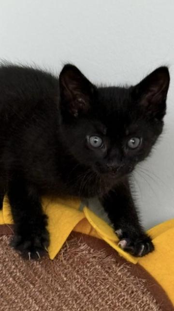 (a) Jetta - adoptedFemale3 MonthsJetta's fur is very black and she has the softest eyes. The first thing you'll notice, when meeting Jetta, is that she loves to purr. This grateful companion will bring you endless love.