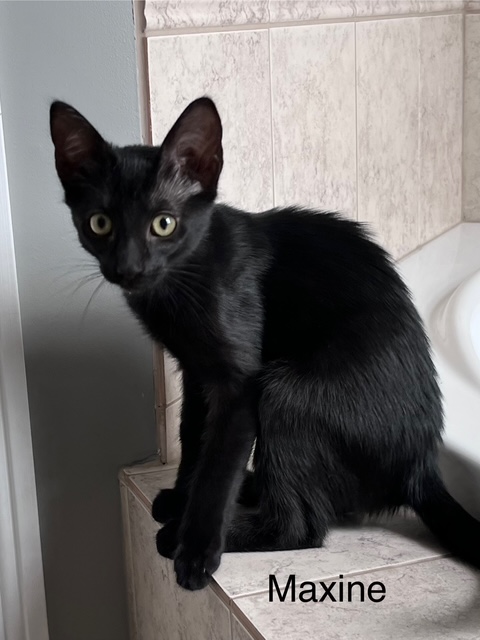 Maxine - adoptedFemale4 MonthsYOU'RE NOT SEEING DOUBLE. Maxine and Georgia are look alike sister! Maxine is as sweet as her name. She is a sleek, black kitty with a gorgeous colour that makes her look like a panther.