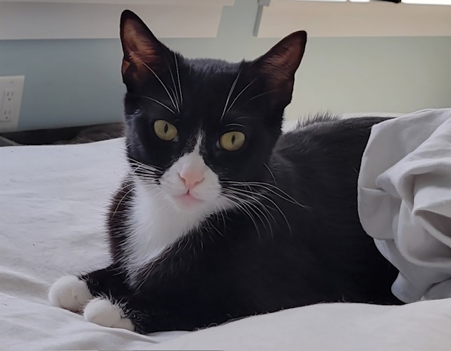 Sash - adoptedFemale4 MonthsSash is an (almost) 4 month old tuxedo. She is spayed and ready for her forever home. Sash enjoys everyone's company and loves to play or snuggle with other kitties.