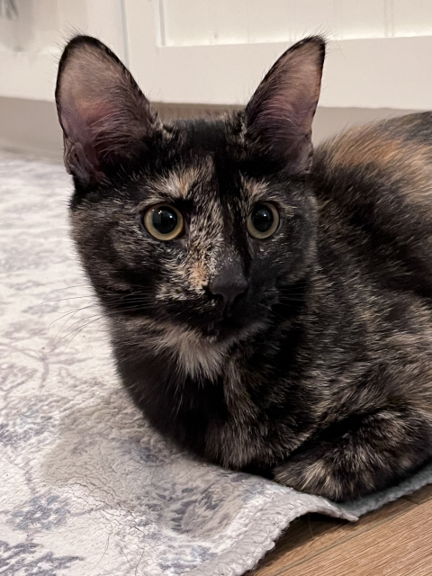 Emi - AdoptedFemale4 MonthsEmi is a 4 month old calico. She is a sweet attentive little lady who enjoys cuddles and playtime with other kitties. Emi is spayed, has 2 vaccinations, microchipped and dewormed.