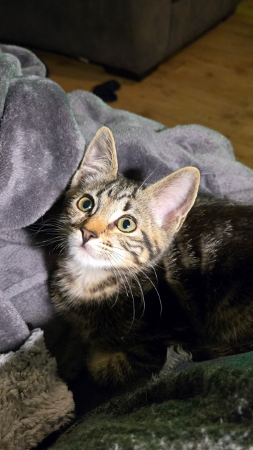 Tippy - adoptedMale3 Monthsadopted - Tippy is a 11 week old male tabby. He was named Tippy because of the white tip on the end of his tail. He is super cuddly and extremely gentle.