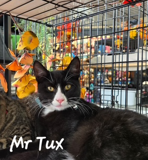 Mr Tux - adoptedMale6 MonthsNot an original name for a Tuxedo but he fits it well. Mr Tux is a handsome 6 month old. This fella loves to snuggle with his siblings. He's gentle, friendly and playful.