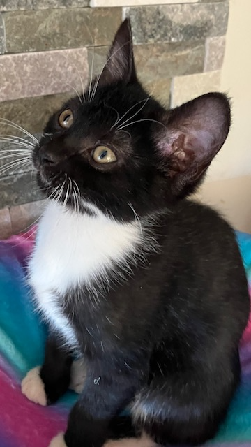 Stash -adoptedMale3 MonthsStash is a 10 week old back and white short hair with an equally cute brother names Mikey. He has a gentle personality with a purr that can be heard across the room.
