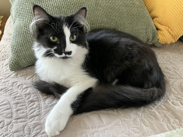 Frankie - AdoptedMale4 YearsFrankie is a 4 year old male Tuxedo cat. He is as sweet as he looks! Frankie loves tummy rubs, other cats and respectful dogs. He has perfect hygiene and table manners.