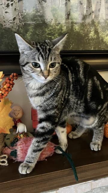 Addie - AdoptedFemale5 MonthsAddie is a dark tabby. She has amazing markings. Mother nature at her best! Addie is spayed, vaccinated, microchipped and dewormed. She is a very cuddly kitty.