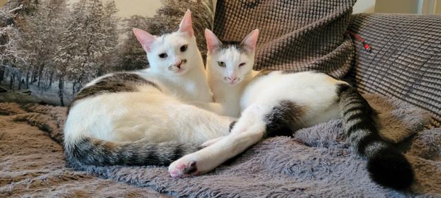 John and Wayne - Available Bonded PairMale & Male1 YearJohn & Wayne are one year old bonded brothers who enjoy doing everything together. When one wants to play and explore, the other is close behind. These two love quiet time with their humans.