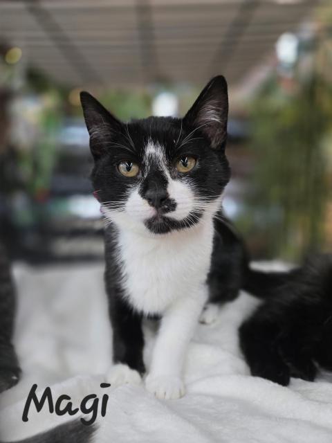 Magi - AvailableFemale6 MonthsMagi is a playful and loving girl who enjoys the company of other kitties. She would do well with respectful children. Magi is spayed, microchipped, vaccinated and dewormed.