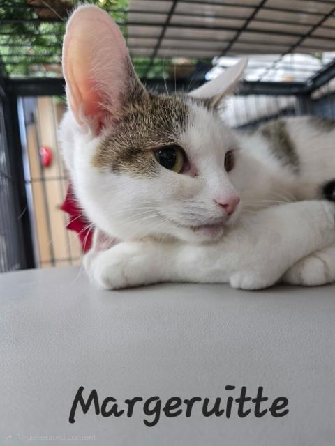 Margeruitte - AdoptedFemale6 YearsMargeruitte came into care, with her brother, because their loving human mama became ill. These kitties are incredibly sweet and well mannered.